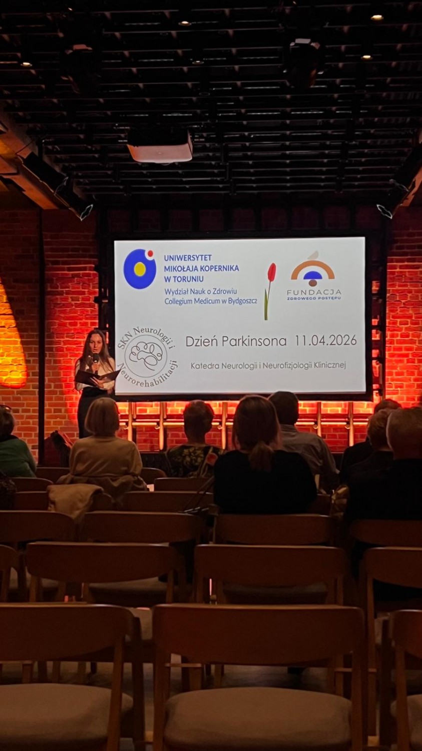 11 kwietnia, w ramach obchodów Światowego Dnia Choroby Parkinsona, Katedra Neurologii i Neurofizjologii Klinicznej CM UMK we współpracy ze Studenckim Kołem Naukowym Neurologii i Neurorehabilitacji oraz Fundacją Zdrowego Postępu zorganizowała wyjątkowe spotkanie naukowo-szkoleniowe dedykowane pacjentom i ich opiekunom.